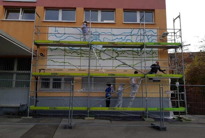 Und so veränderte sich unsere Schulaußenwand zu einem Kunstwerk: